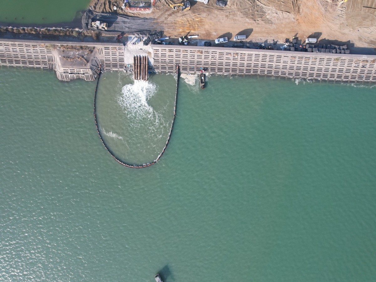 To address this challenge, the project uses HOKBG silt curtain systems to control turbidity during construction. A silt curtain, also known as a turbidity curtain or sediment control barrier, is widely used in dredging projects, marine construction, coastal engineering, and environmental protection projects to prevent suspended sediments from spreading beyond the work area.
